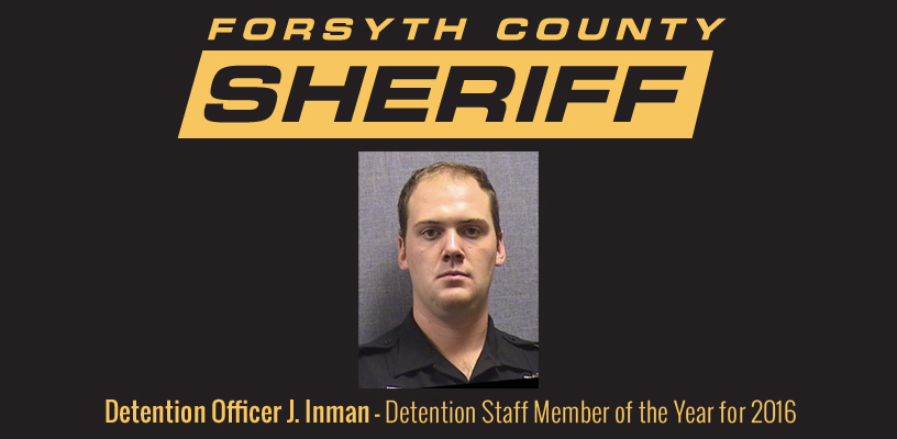 Detention Officer Inman takes his job and positions seriously. He performs assigned tasks with professionalism and accuracy, which displays passion and dedication to work and Forsyth County.