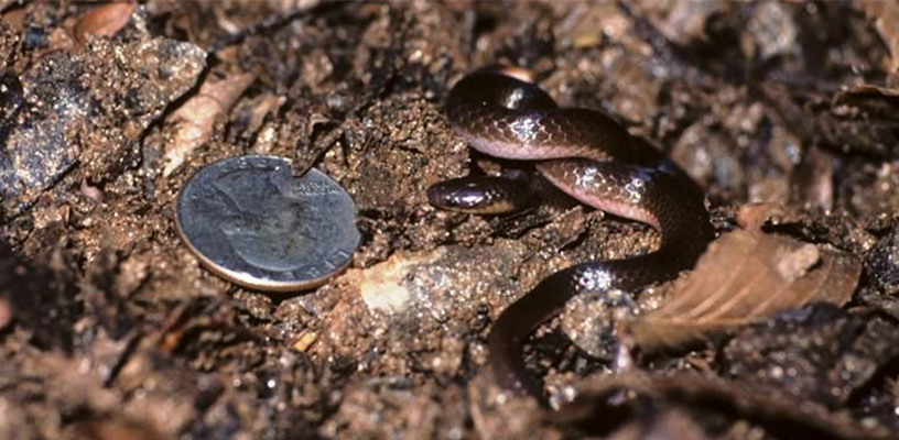 The worm snake, (Carphophis amoenus), is so small that at first glance one might mistake it for an earthworm, but look closely to see a body covered in dry scales and a small head with two noticeable eyes, traits not seen in earthworms. Take another look to see that the worm snake is two-toned, displaying brown on the top with a pink underside. Like most snakes in North Carolina, worm snakes are nonvenomous. When threatened they do not use bite but may wiggle around wildly before attempting to go undercover. They seek food and shelter in leaf litter, rotting logs, or by burrowing into the soil where they seek out earthworms as a primary food source, along with insect larvae and slugs. Although common throughout the state, worm snakes are seldom seen in the wild due to their secretive nature. They are sometimes encountered when digging in mulch or compost. When this happens stop and appreciate the opportunity to catch a rare glimpse of this diminutive reptile.