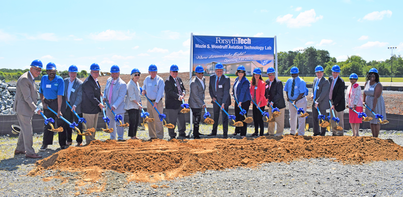 Forsyth County commissioners helped break ground on Forsyth Technical Community College’s new aviation lab at Smith Reynolds Airport on Wednesday.