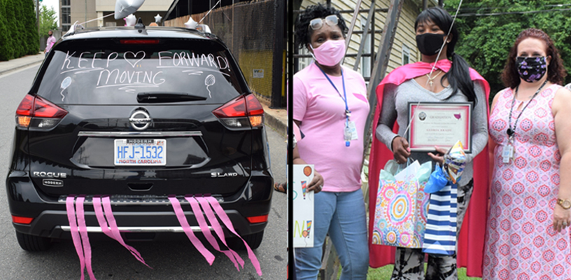 The parade stopped for a few minutes at each house so the graduates could receive their certificate from County Commissioner Gloria Whisenhunt, who was instrumental in bringing the program to Forsyth County. They also received a cake and gifts.