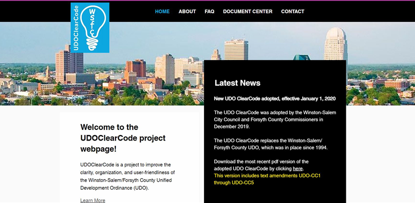 Due to a recent technical issue, the Winston-Salem/Forsyth County Planning Department has changed the name of its online UDO website from udoclearcode.com to www.udoclearcode.org. This website is the online portal for UDO ClearCode, the development regulations for Winston-Salem and Forsyth County, which became effective January 1, 2020.