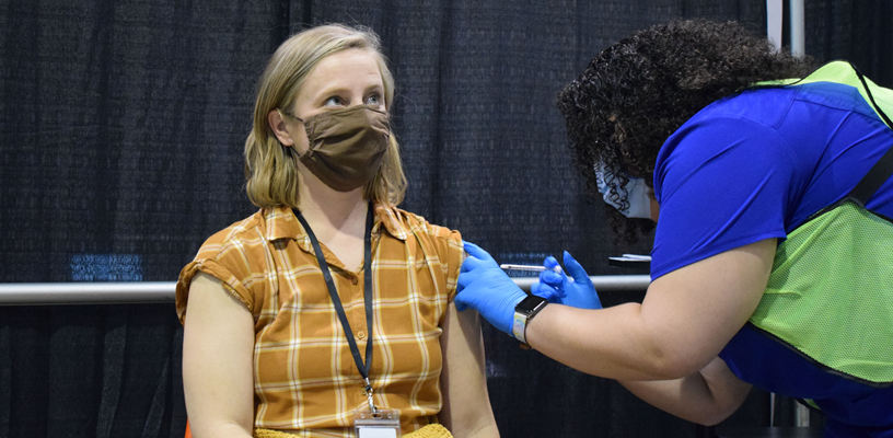 In addition to Public Health’s vaccine allotment, both hospitals contributed vaccine in order to increase the number of school employees who are able to be vaccinated at the Fairgrounds this week. The three organizations meet weekly to determine staffing and vaccination needs in order to best serve the whole community.