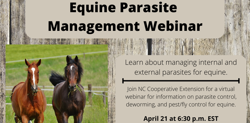 Dr. Tom VanDyke, Clinical Veterinarian Ruminant Production Medicine with North Carolina State University College of Veterinary Medicine will be presenting virtually via Zoom on Thursday, April 21, 2022 at 6:30 p.m. Topics include parasite control, deworming, and pest/fly control for equine. Insecticides will also be covered, as well as the Asian Longhorned Tick. One hour of pesticide credits will be offered for K, N, D, and X North Carolina license holders.