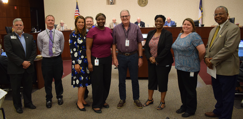 Commissioner Fleming El-Amin presented the resolution to Social Services staff and Senior Services CEO Lee Covington. Staff also placed pinwheels in front of the Social Services building on June 8 representing the 350 Adult Protective Services calls that DSS received last year. Every year, an estimated 2.1 million older Americans are victims of elder abuse, neglect, or exploitation. For every case of elder abuse or neglect that is reported, it’s estimated as many as five cases are not.