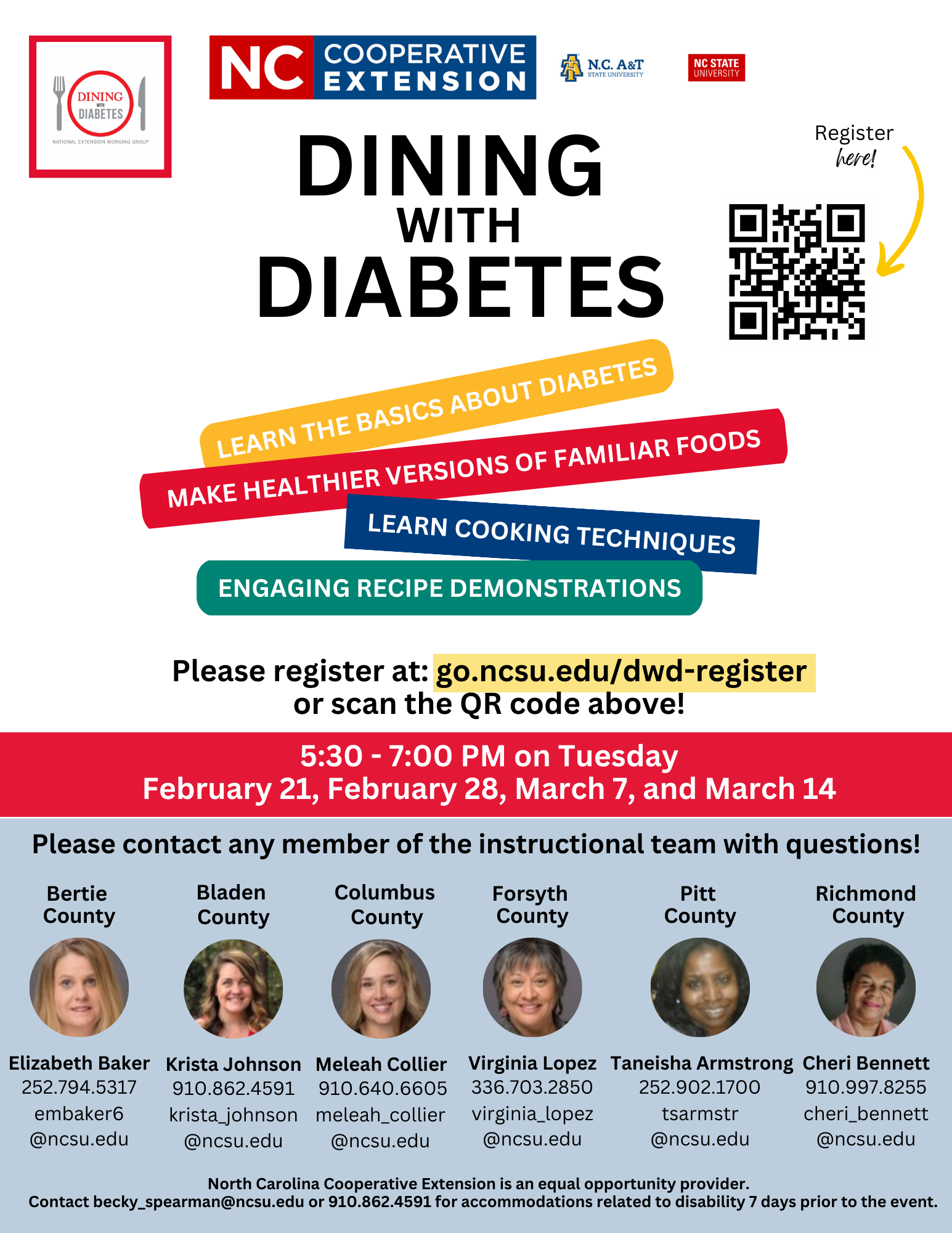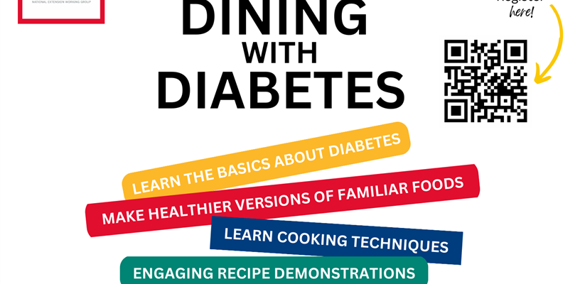 N.C. State Extension is offering a Dining With Diabetes Online Series designed for adults 18 years and older at risk for type 2 diabetes. This series is recommended for those with prediabetes, type 2 diabetes or other insulin-resistant conditions, people with other conditions that would benefit from this program, and their families and caregivers.