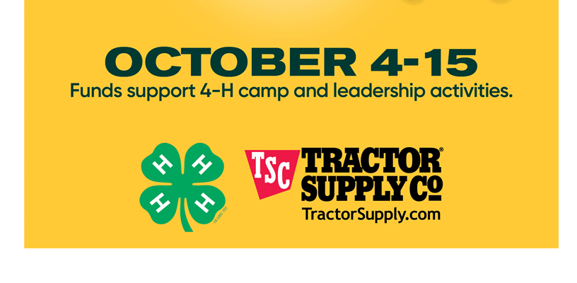 The annual Fall 4-H Paper Clover Campaign is taking place October 4 - 15. Visit Tractor Supply Company (TSC) stores in Clemmons, Kernersville, or Rural Hall and donate $1 (or more) to 4-H at check-out. Funds raised help us send young people to 4-H Overnight Camp, North Carolina 4-H Teen Congress, and other leadership events.