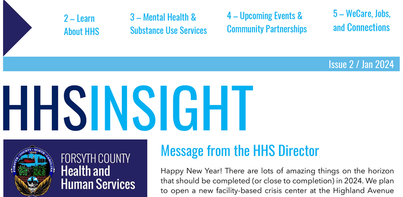The latest issue of the HHS Insight newsletter is now available, providing information and updates on Forsyth County Health and Human Services.