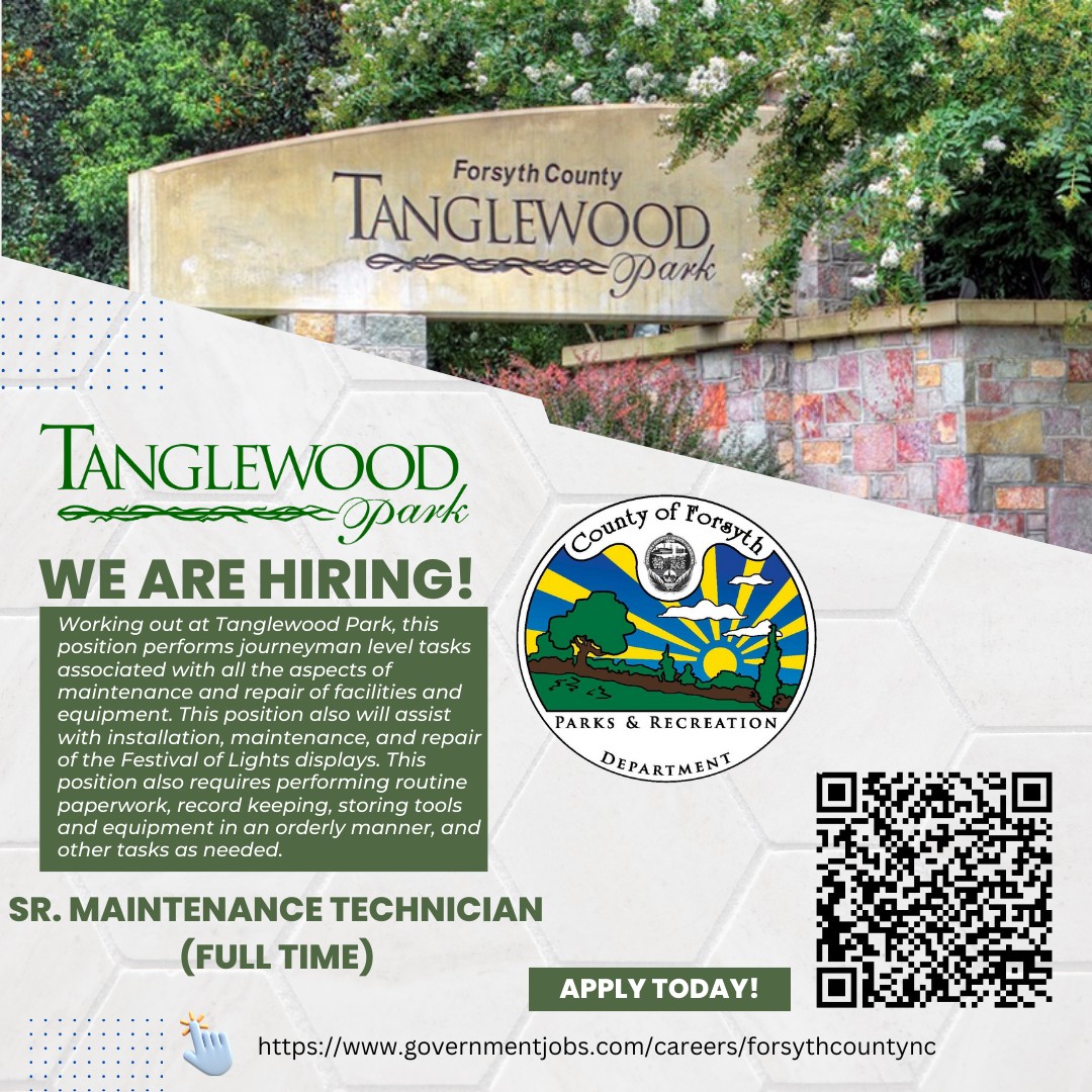 Tanglewood Park is hiring a Sr. Maintenance Technician!